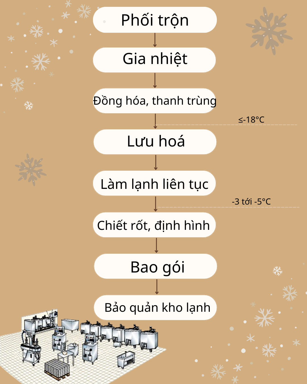 Quy trình này đảm bảo hỗn hợp kem được đồng nhất, loại bỏ những vi khuẩn có hại và giữ lại những lợi khuẩn đảm bảo cho sức khỏe, làm cho chất lượng kem có cấu trúc mịn và ổn định trước khi đông lạnh và đóng gói để đưa ra thị trường.