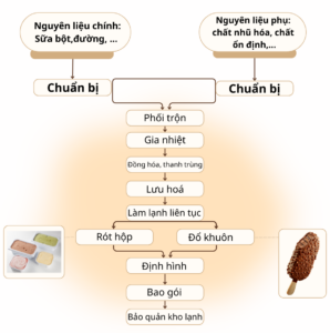 Quy trình này đảm bảo hỗn hợp kem được trộn đều, tiêu diệt vi sinh vật, làm kem có kết cấu mịn và ổn định trước khi đông lạnh và đóng gói để đưa ra thị trường.